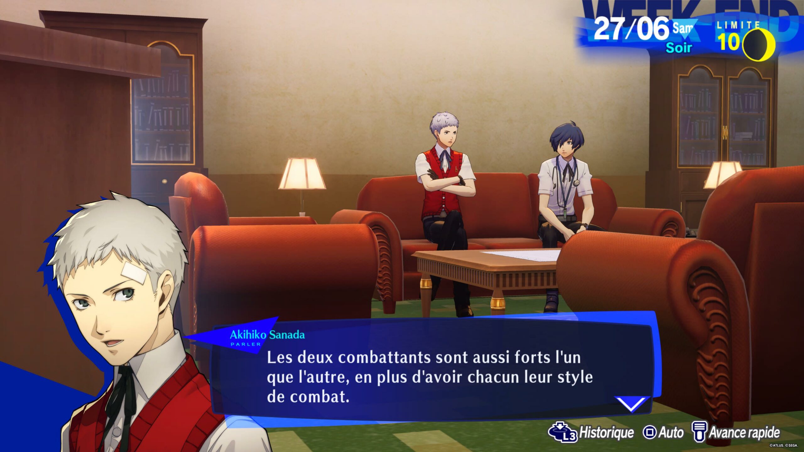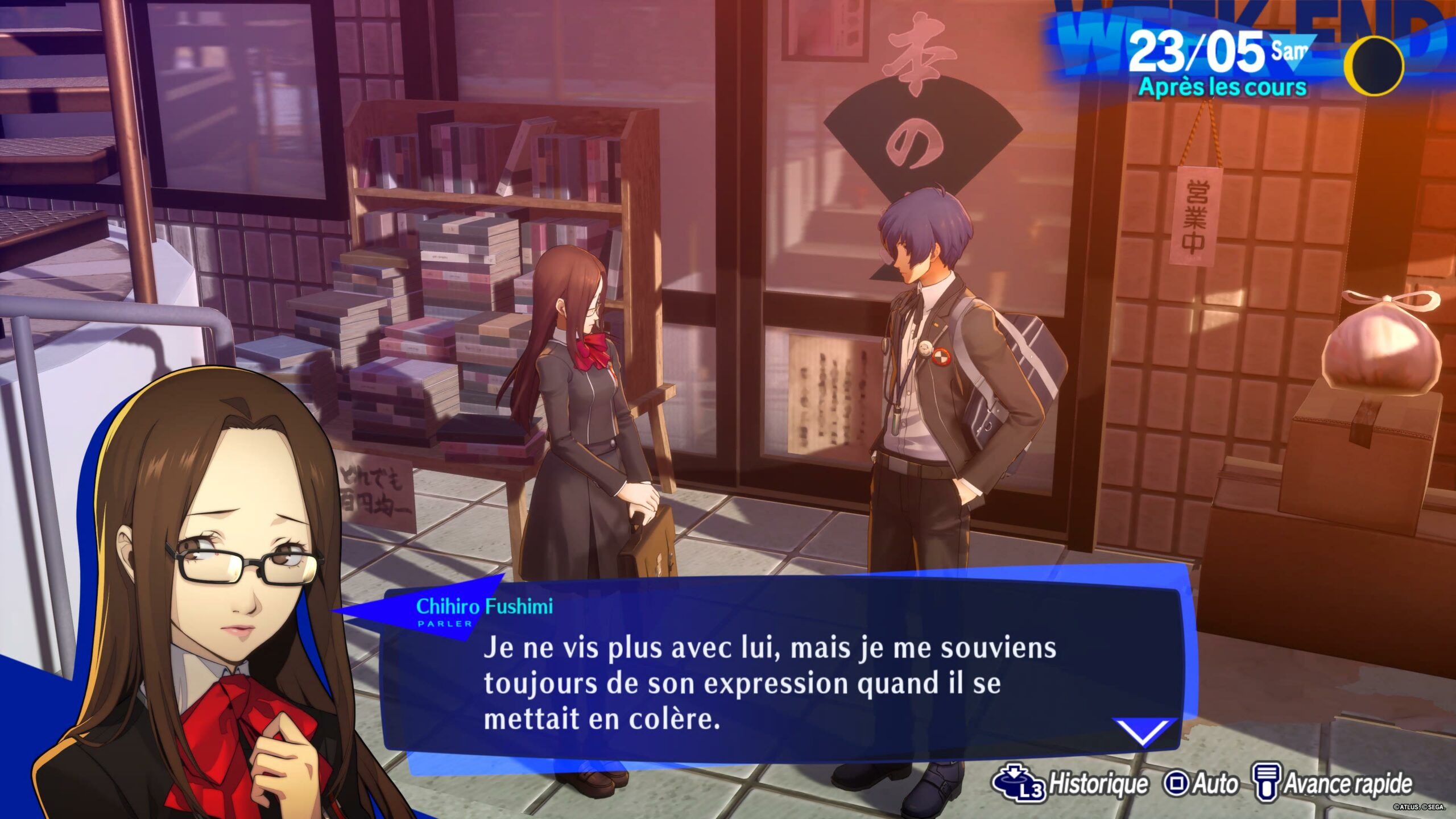 C'est d'autant plus vrai en considérant que Persona 3 est sorti à une époque où les JRPG étaient bien plus exigeants. La suppression de mécaniques difficiles pour rien libère un temps fou qui permet de ne rien louper de l'expérience, et le plein contrôle des actions de son groupe sera une nouveauté bienvenue pour quiconque a connu Persona 3 FES plutôt que Persona 3 Portable, mais voilà… Le jeu ne s'arrête pas là.