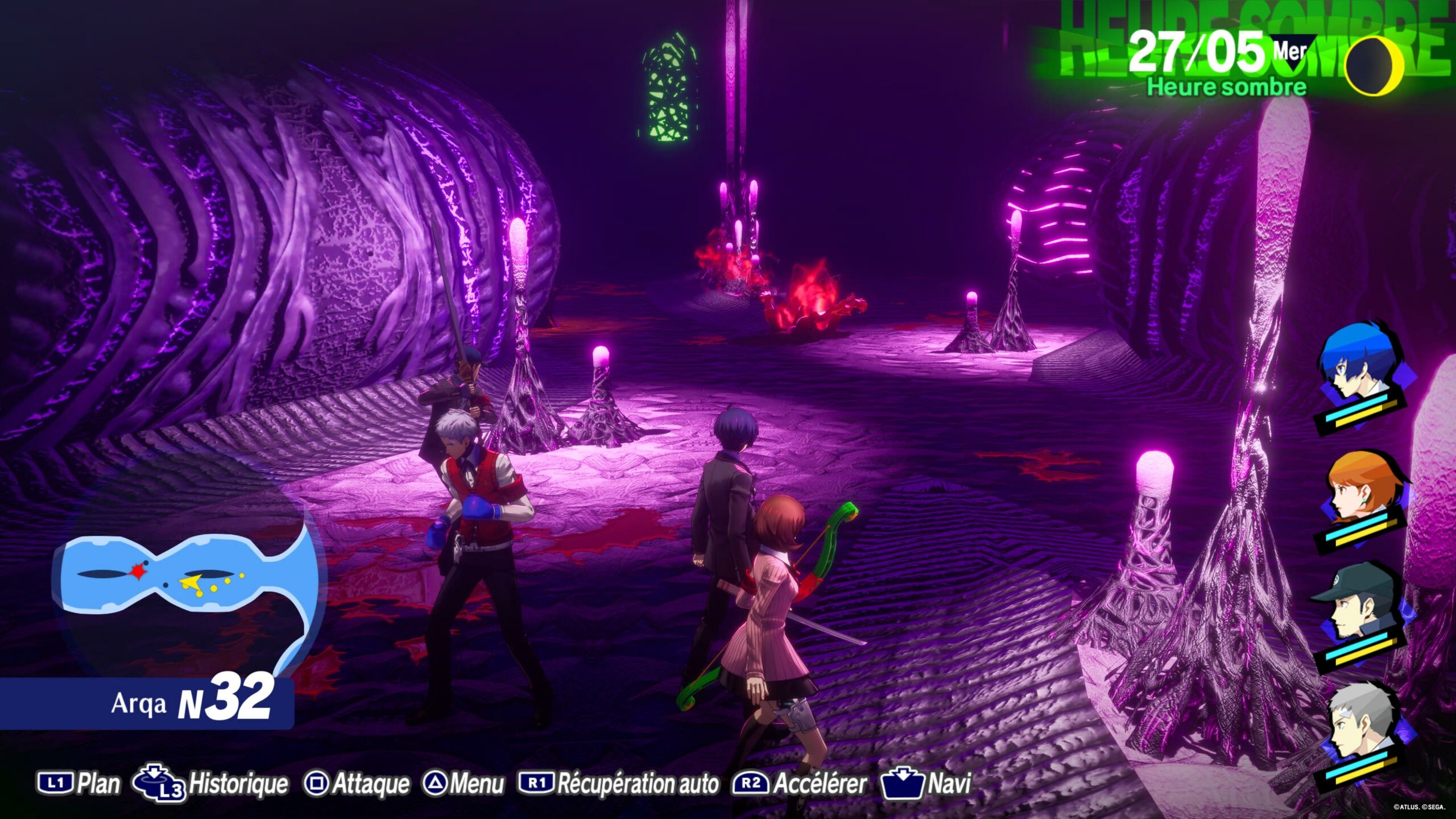 Mais le plus grand choc sera de découvrir le donjon central Tartarus pour quiconque a connu la série à partir de Persona 5. Car ici, le principe était de mettre en avant un donjon en génération procédurale, soit plus ou moins aléatoire. Plutôt novateur pour l'époque, il en reste en 2024 une succession d'étages dont le design se renouvelle assez régulièrement, mais qui est loin de l'orfèvrerie avec laquelle chaque donjon de Persona 4 et 5 a été conçu. Il fallait absolument conserver ce point pour la cohérence de l'histoire de Persona 3, qui justifie bien cette grande tour labyrinthique centrale aux détours mortels, mais un joueur moderne n'a pas les mêmes attentes.
