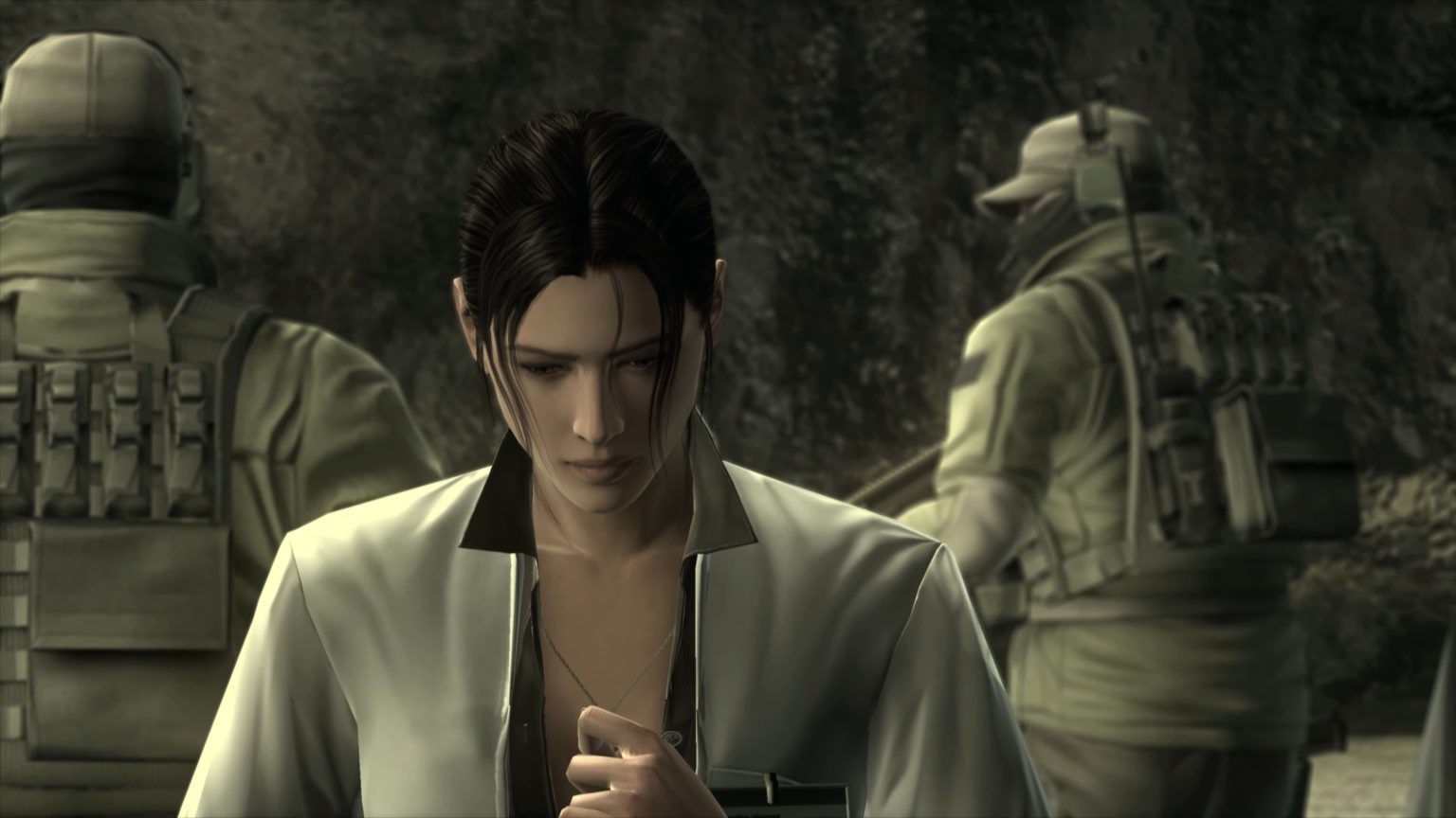 La cantatrice, à la voix aussi puissante que meurtrie, raconte en hébreu l'histoire d'un amour perdu sur le champ de bataille. "Faisant vœu d'un monde qui n'a plus de larmes à pleurer, mon cœur est déjà mort. L'espoir. Tu me manques tellement que cela me fait mal". J'ai appris la signification de ces paroles en écrivant ces lignes, mais leur message m'avait transpercé au travers des barrières de la langue dès les premières intonations. Clope vissée au bec sous une moustache foisonnante, les cheveux blancs et l'air résigné, le plus grand soldat de l'Histoire s'élance pour la première fois dans un conflit bien plus large que tout ce qui nous a jamais été montré dans la série. Old Snake, comme on le surnomme, n'a pas les mêmes avancées high-tech que ses ennemis pour augmenter ses capacités, mais plutôt l'expérience réelle du conflit et ses nombreuses cicatrices pour le guider.