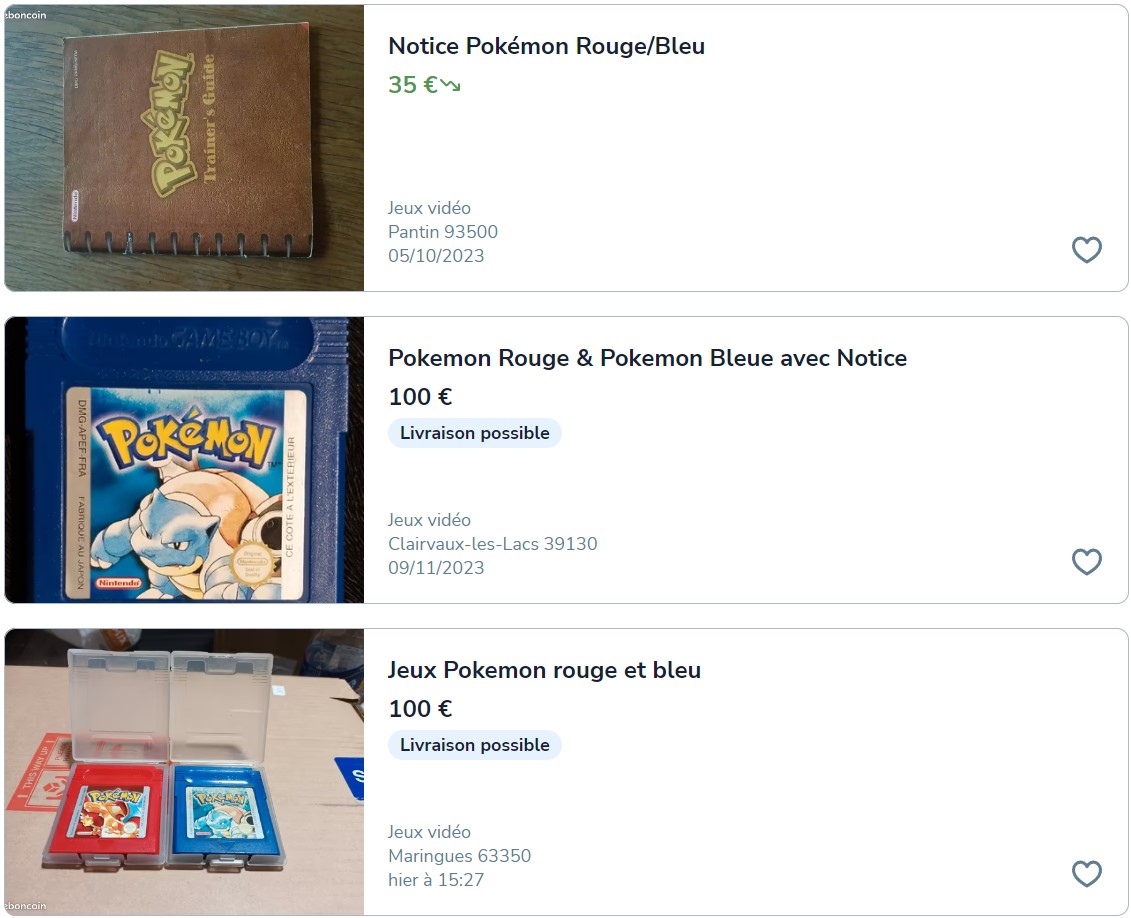 Un marché qui est capable aujourd'hui de prendre la quatrième console portable la plus vendue au monde, la Game Boy et la Game Boy Color (118,69 millions d'exemplaires), et nous la revendre incomplète, avec un besoin de réparation évident, à 50 €, soit environ 3/4 du prix de la console neuve à sa sortie. Les jeux ne sont évidemment pas épargnés, avec la même absence de logique : les Pokémon Bleu, Rouge et Jaune, qui ont dépassé les 31 millions de ventes à travers le monde, se retrouvent à 40, 50, 60 € sur LeBonCoin malgré leurs piles aujourd'hui mortes qui empêchent toute sauvegarde, et donc toute progression dans le jeu. Les requins tournent autour de leur proie, au point que la partie n'est jamais terminée ; si vous êtes premier sur un deal, ils glisseront dans les DM pour proposer au vendeur une offre qu'il ne peut décemment pas refuser, même si vous aviez campé sur la page et sorti votre CB en premier.