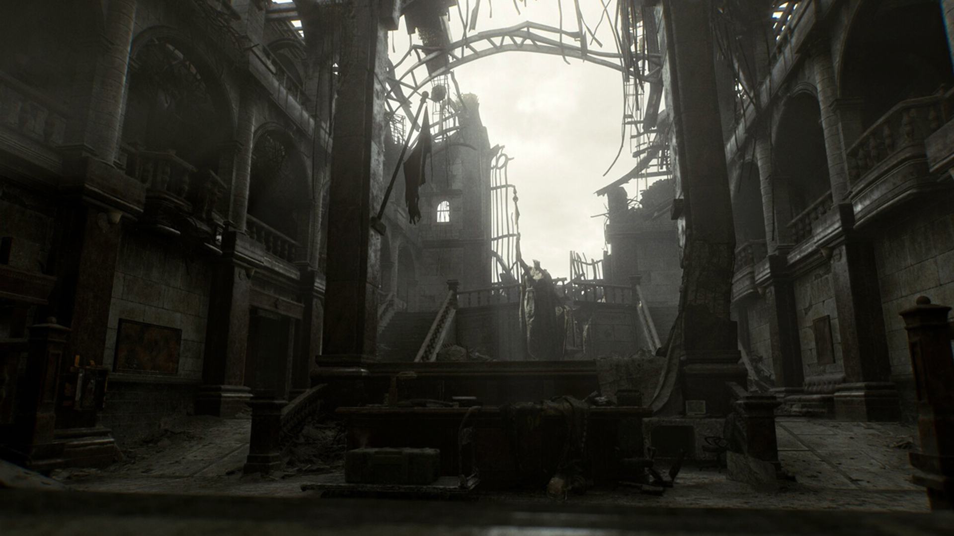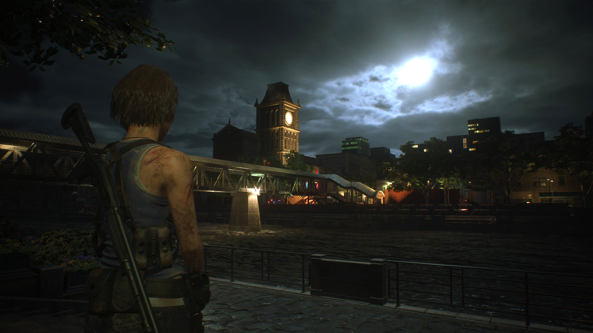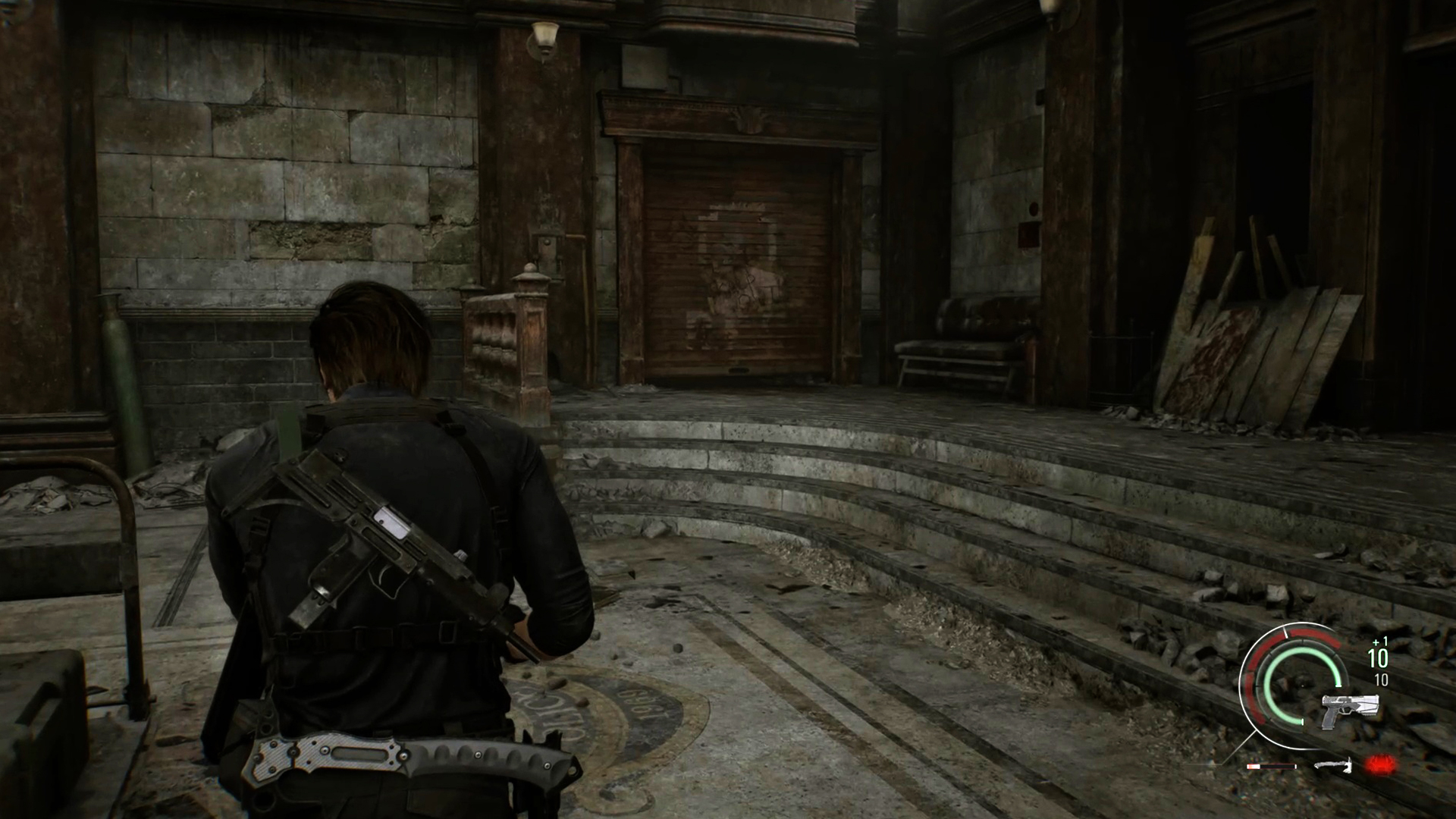 Arrive enfin le retour à Raccoon City qu’on nous a tant vanté. Vous êtes à la moitié du jeu et R9quiem décide de se poser un peu dans les ruines de l’ancienne ville, aux pieds des immeubles jaunis, réduits à rien après la bombe lâchée à la fin de RE2. Nostalgie. Quitte à jouer le dépaysement, cette section propose une approche différente qui rappelle le début de The Last of Us Part. II. On se dit que tiens, après tout, Resident Evil se prêterait plutôt pas mal à des zones semi-ouvertes.
