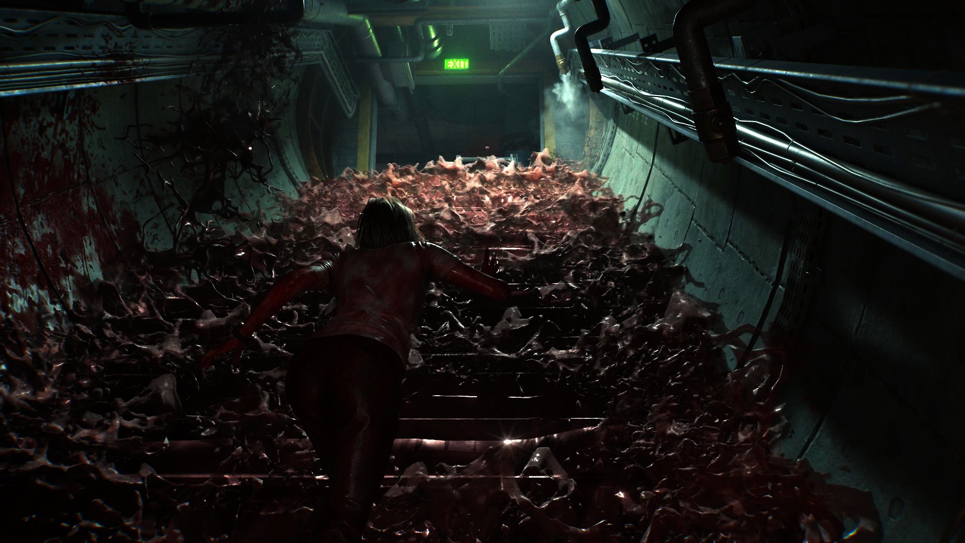 Resident Evil a toujours reproduit cet effet, suivi cette courbe. Introductions très réussies, développements plus ou moins aboutis selon les volets, et derniers arcs plus conventionnels et entendus. Et ses concepteurs, tout en le sachant, n’ont jamais vraiment tenté de contourner la chose. En résulte la plupart du temps une conclusion dans un labo aseptisé et éclairé où on oublie la peur au sens strict pour se concentrer sur l’action. La peur devient tension. Ne plus avoir assez de munitions, plus assez de temps, plus assez de vie… On ne se demande plus ce qu’on va trouver dans l’angle mort du prochain couloir ou ce qui pourrait bien nous tomber sur le râble à tout moment, mais juste où aller…