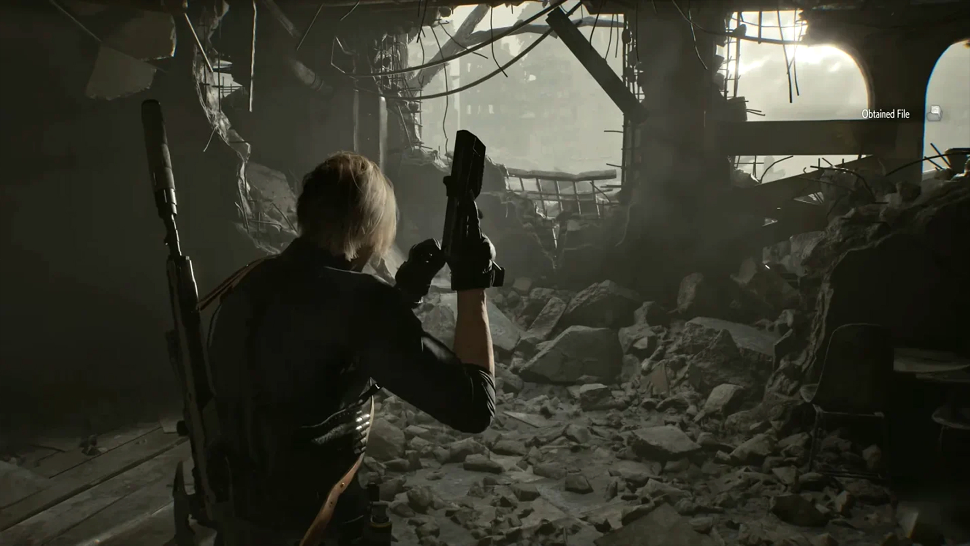 "La Fille" est un cauchemar vivant des plus justes, et le développement de son histoire – quand bien même il est évident – transcende son état en une tragédie tordue. De son introduction via des livres pour enfants à son arrivée dans le cadre lors d'une cinématique mémorable, cette ouverture claustrophobie largement discutée est d’une efficacité sans pareille. Le gameplay est à la disposition de l’histoire, l’histoire au service du gameplay. La lumière est utilisée à la fois comme élément visuel et comme mécanique. Et c'est une réussite. Une maîtrise de la partition, renforcée par une réalisation léchée, une ambiance sonore millimétrée qui n'hésite pas à s'effacer complètement par moments, et des choix de design inspirés. Puis le jeu se poursuit. Il nous met aux commandes de Leon S. Kennedy, héros bien connu de la série apparu dans RE2 et héros de RE4, remis sur le devant de la scène dans les récents Remakes. Exit le principe de choix de personnages : l'aventure garde le concept d'histoires parallèles mais sera mixée en un tout scénaristique en alternance.