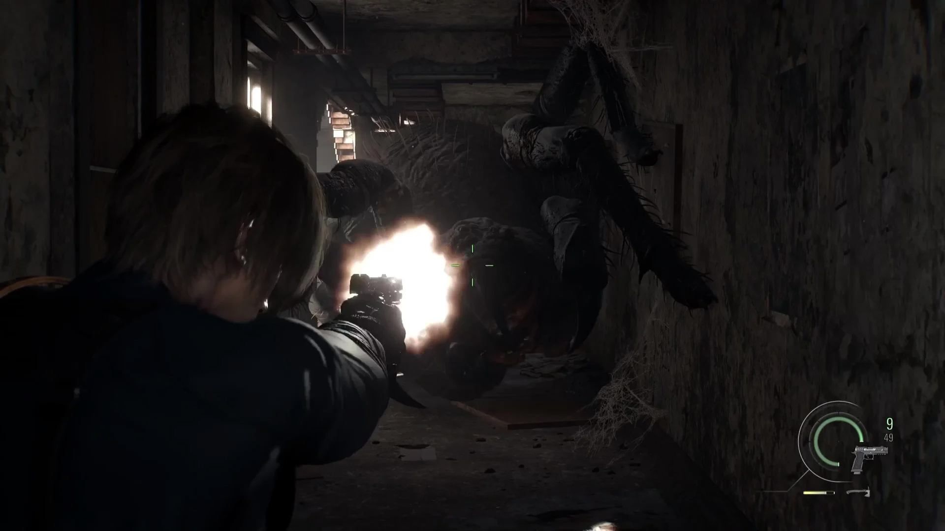Mais étriquée entre une araignée géante qui revient comme une Ex non désirée dans un jeu de poursuite assez mal amenée et une course à moto plutôt médiocre pour la forme, cette grosse partie est surtout là pour célébrer le passé de Leon dans une absence d'originalité à peine voilée. C’est le moment hommage à RE2 et 4 à la fois. De l’action, des munitions, des armes à booster, à customiser, du scoring, un inventaire XXL… RE sait toujours le faire et le prouve sans se donner trop de mal, mais comme les décors monochromes qui nous entourent, quelque chose semble s’effriter, se déchirer, dans un déferlement redondant et uniforme.